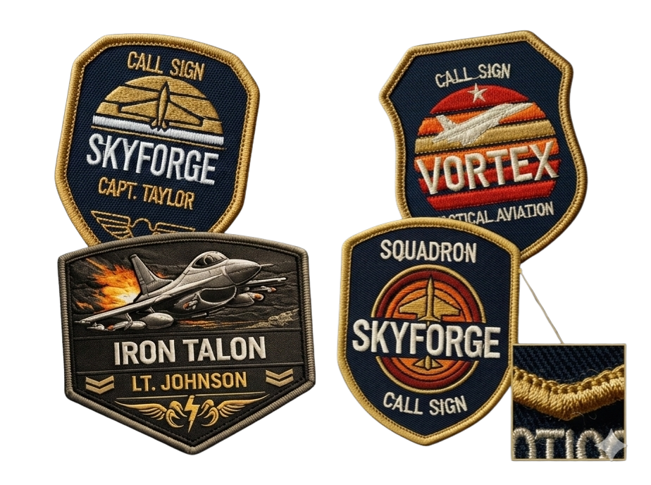 From aircraft silhouettes to squadron emblems and call signs, every patch is fully customizable to match your vision. Our design team helps bring your aviation concept to life.