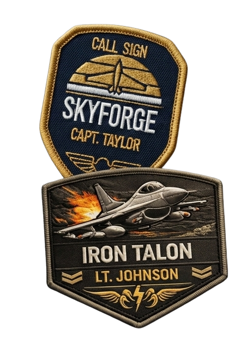 Custom embroidered patches are personalized fabric emblems stitched with high-density thread to display names, call signs, squadron logos, or department insignia on uniforms and gear.